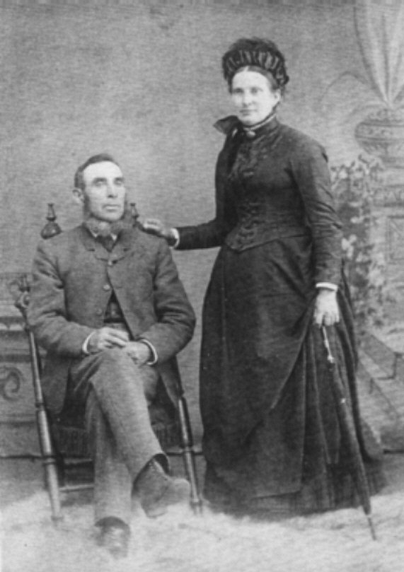 On July 4, during our family trip to the Rockies in 1979, we visited William John Ross (D3D) and his wife Zella Louise Venning at the Victoria Park Lodge in Souris. They permitted me to take slides of the oil paintings of Donald Ross and Mary Ann Madill. The photographs are shown to the left and the right above. Evelyn (Ross) Brown (D8A) telephoned me on January 1, 1981, during a visit to Toronto from Victoria, British Columbia. Donald Ross died at her father's home on August 26, 1914. When her father, Frank Ross (D8) died on February 29, 1932, in Winnipeg, Manitoba, the oil paintings had been sent to Aubrey Cunningham (DxD), who had colour enlargements made for some of the family members. On March 3, 2000, I received an envelope of pictures from Donald B. Brown (D6B1) of Lindsay, Ontario. Among the photographs was the one of Donald Ross and Mary Ann Madill in the centre above. This is obviously the original photo from which the oil paintings were made. [As they say . . . now we know the rest of the story.] |