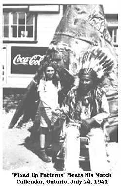 "Mixed Up Patterns", was wearing a Plains Indian headdress and standing in front of a tepee (teepee, tipi) when I met him. [It would have been slightly more correct and less ridiculous for him to be using a wigwam (wigwaum, wikiwam) of the woodland natives.] At age 11, I advised him that his actual dwelling should be a "longhouse" and he should forget his feather bonnet. He sputtered at this boldly affronting remark and, then smiling, inquired if I wanted to be photographed with him or not. He plonked a moth-eaten head band on me and our meeting was recorded for posterity.   I believe that "Mixed Up Patterns" was a Mohawk descendant of Chief Joe Brant, famous leader of the Six Nations Confederation (also known as the League of the Iroquois). He received his name from an early Ontario psychologist who was studying behavioural patterns amongst the people of the first nations, because he was so difficult to pidgeonhole into a single descriptive pattern of behaviour.  The older brother of "Mixed Up Patterns" was quite impossible to label, having failed all of the tests. Therefore the tribe selected "Mixed Up Patterns" as its Chief. The older brother was so angered by this act, that he stormed off to the Rocky Mountains between Alberta and British Columbia, where he took out his frustration by hurling boulders at passing motorists from the tops of the mountains. ... Actually, that is how the older brother received his name of "Falling Rocks". To this day, The Ministry of Transport posts signs in his memory along the Trans Canada Highway ..... BEWARE OF FALLING ROCKS. During our trip with the Canadian Massed Pipes and Drums to Scotland in 2009, Pat and I walked around Arthur's Seat a few times. There were numerous signs along the paths to warn climbers about the danger of falling rocks. This particular one was across the road from Holyrood Park, the site of The Gathering. I didn't realize that the tale of Falling Rocks had spread this far.  |