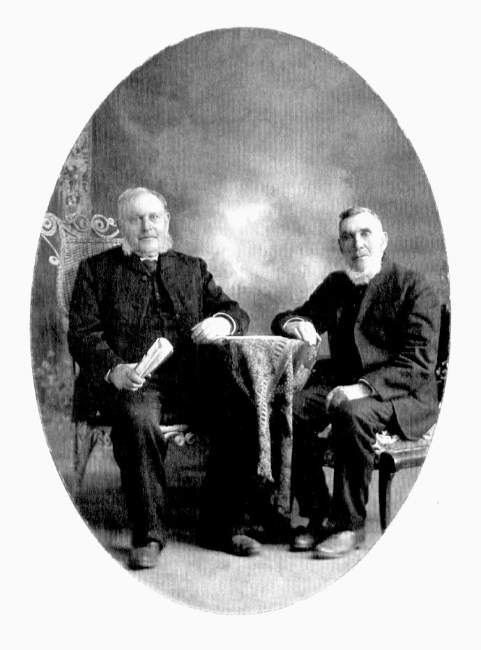 This picture of Donald Ross (D) and his brother Roderick Ross (G) was taken in Harriston, Ontario, by photographer Herb Copeland. This would have been just before Donald and Mary Ann travelled to Manitoba with their son Francis "Frank" Roderick Ross (D8) in early 1902. [Another son John D. Ross (D3) had moved there twenty years earlier.]