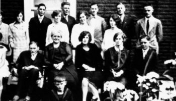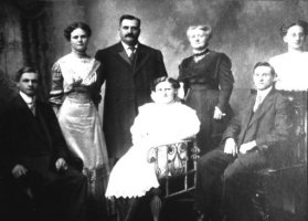 LEFT: This photo if the family of Henry "Harry" Ross and Winnifred Stokes is through the courtesy of Olive (Ross) Cook (D2C). BACK ROW: Madeline (D2K), Effie (D2I), Frank (D2J), Donald (D2F), Bruce (D2G), Ken (D2A) and Forrest (D2E). MIDDLE ROW: Olive (D2C), Nettie (D2B) and Muriel (D2L). SEATED: Marion (D2N), Henry "Harry" Ross (D2) and Winnifred Stokes, Kathleen (D2H), Eldred (D2D)and Harold (D2M) with John (D20) at the very front. RIGHT: This photo of the family of John D. Ross and Henrietta Hartrick is courtesy of William John Ross (D3D). Moving from left to right: William (D3D), Cora (D3A), John D. Ross (D3) Mamie (D3E) seated, Henrietta Hartrick (wife of D3) Oscar (D3B) and Nettie (D3C).