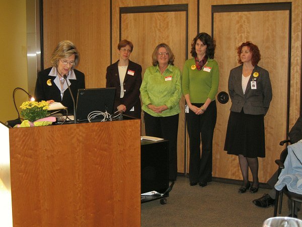 From left to right in the photo below are: Margaret McGrory, Executive Director, Susan Ewing, Director Library Services, Karen Taylor, Director Production and Control, Shelagh Paterson, Director Advocacy, Sales and Marketing and Leslie Deane, Coordinator of Library Volunteer Services.