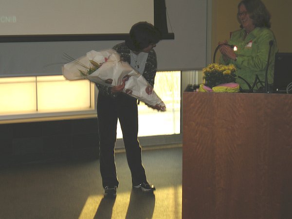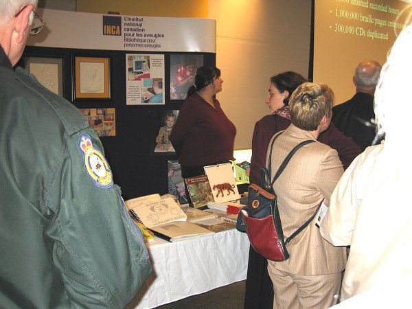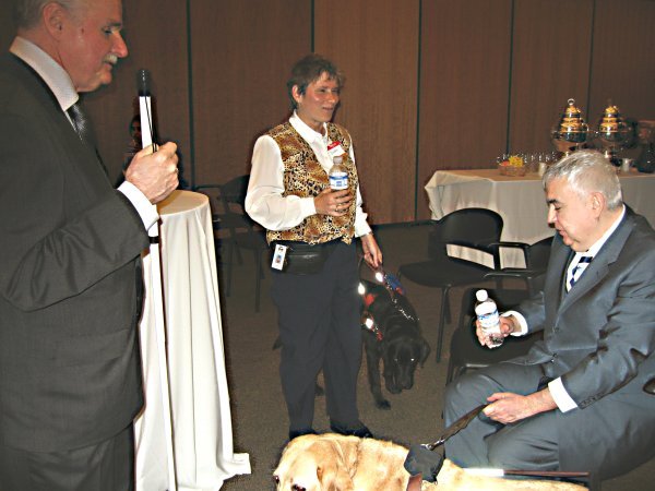 Then I explained to the folks with the seeing-eye dogs that I had refrained from using the flash to take pictures earlier. Jim Sanders said that the dogs probably would not have reacted anyway, and he volunteered to step back while I snapped a photo. I stepped back as well and let him know that I had taken it. In his typical humour, Jim replied, "Now you have two dogs that won't be able to see for awhile." Please visit an article about "CNIB Redesigned" for more details about the exemplary work of the CNIB in Canada. |