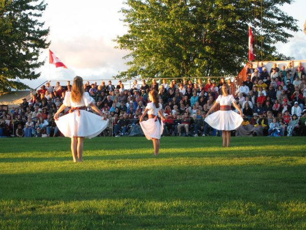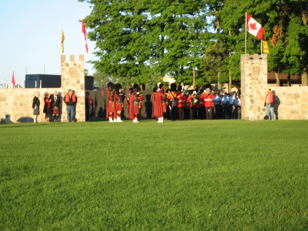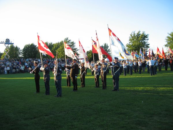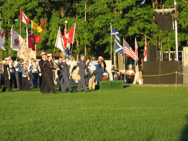 Two pipe bands from Fergus opened the tattoo. Shortly afterwards, there was a fly-over by four tiger moth aircraft. The hit of the evening was the performances of the pipe bands of the 48th Highlanders and the Royal Canadian Regimental Guards.