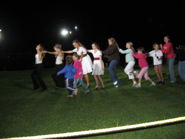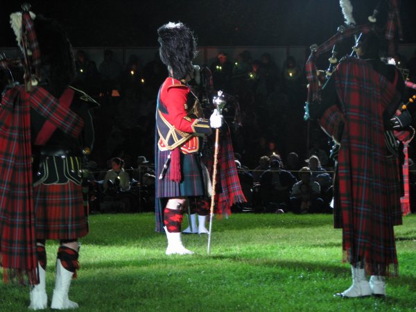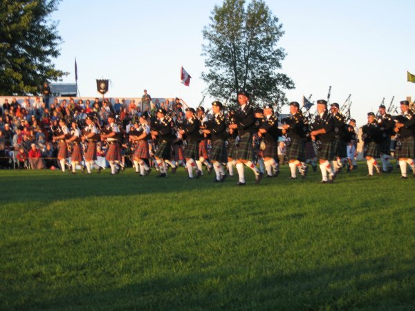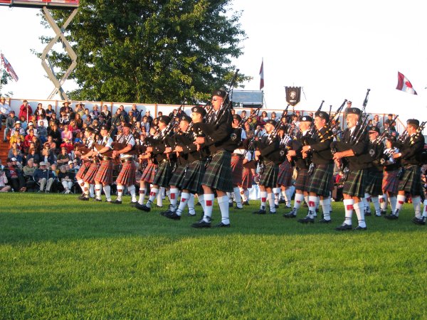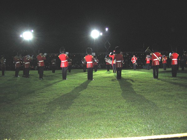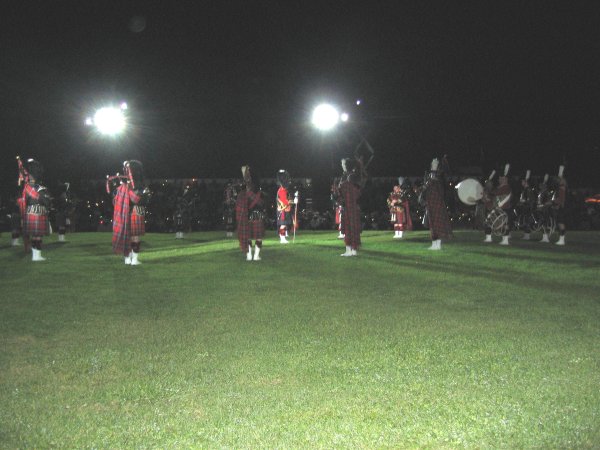 The evening became chilly, but rain clouds kept to the north and south of the field. There was a moment of silence in honour of the recent passing of the chief organizer of the Fergus Tattoo. There was an apparent lack of variety, but this may have been caused by the weather as well. Some items on the programme were too long.