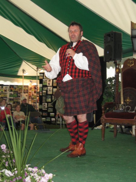 Celtic singer Robin Laing entertained the audience with many Irish songs. Hugh Slaven Robertson delighted everyone with stories of immigration, the use of the basket-hilted broadsword, the Battle of Culloden, and response to many questions.