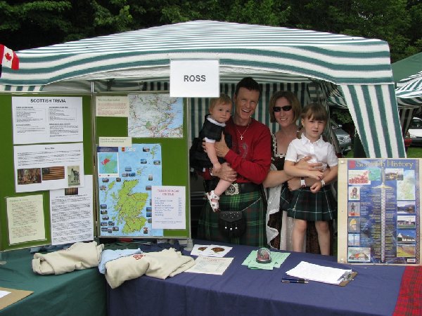 Andy Thibodeau, President of the Clan Ross Association of Canada, returned from an enjoyable Gathering of the Clans in Edinburgh and a Journey into his Past in the Tain area of Scotland just in time to represent the association at the Fergus Scottish Festival and Highland Games in Ontario with his family.