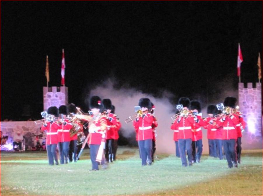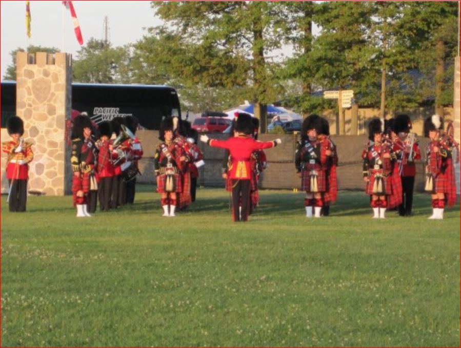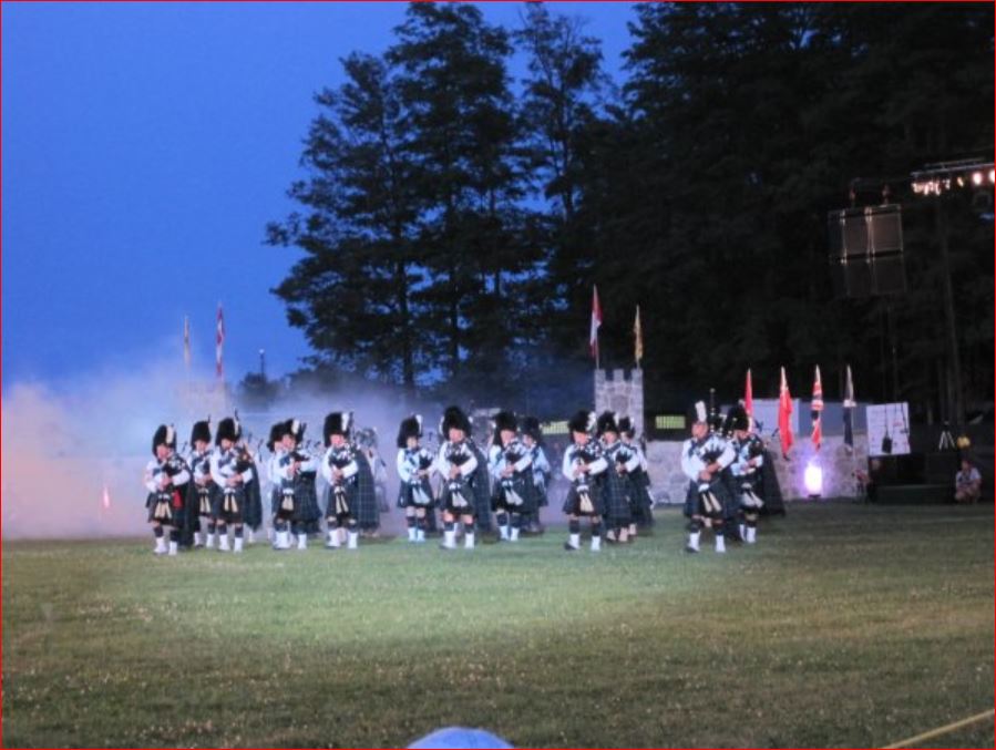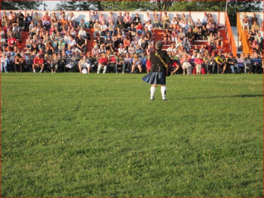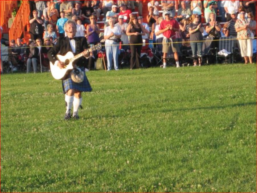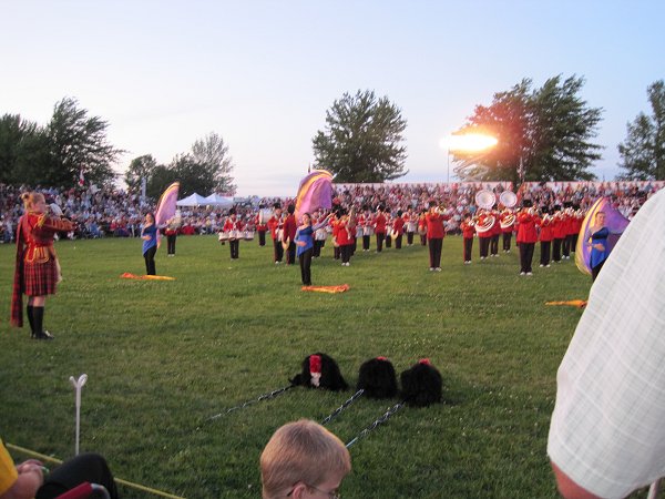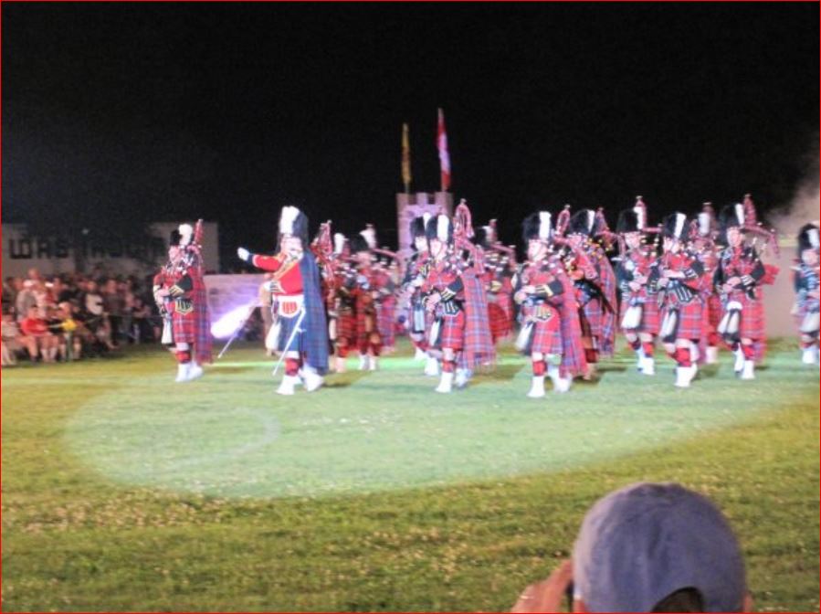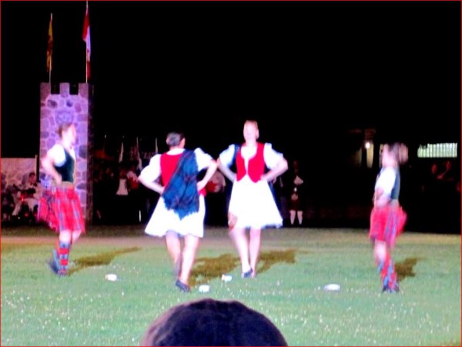 With Denis Snowdon as Master of Ceremonies, the regular tattoo opener (Tommy Leadbeater) took to the main field to get everyone involved. He was followed during the evening by the Royal Regiment of Canada, the 48th Highlanders and the Fergus Pipe Band. World famous John McDermott performed Scottish songs from the stage. Festival Highland dancers did a sword dance later during the tattoo, and I apologize for the lack of light in the photographs.