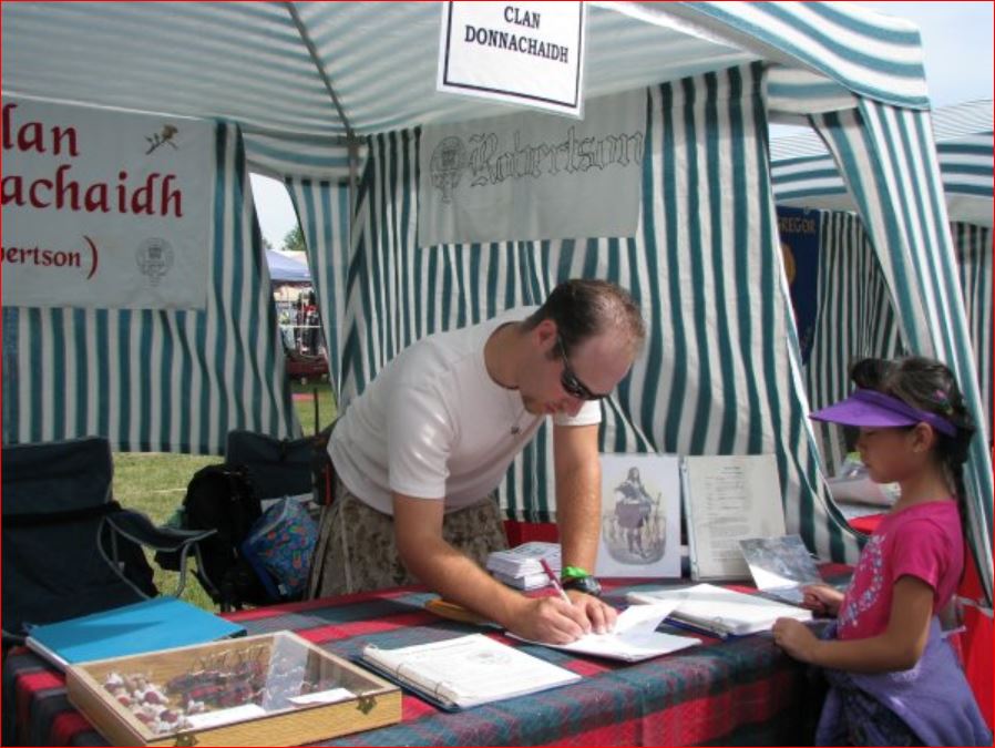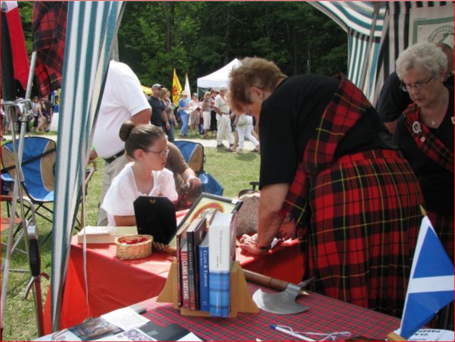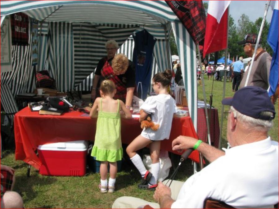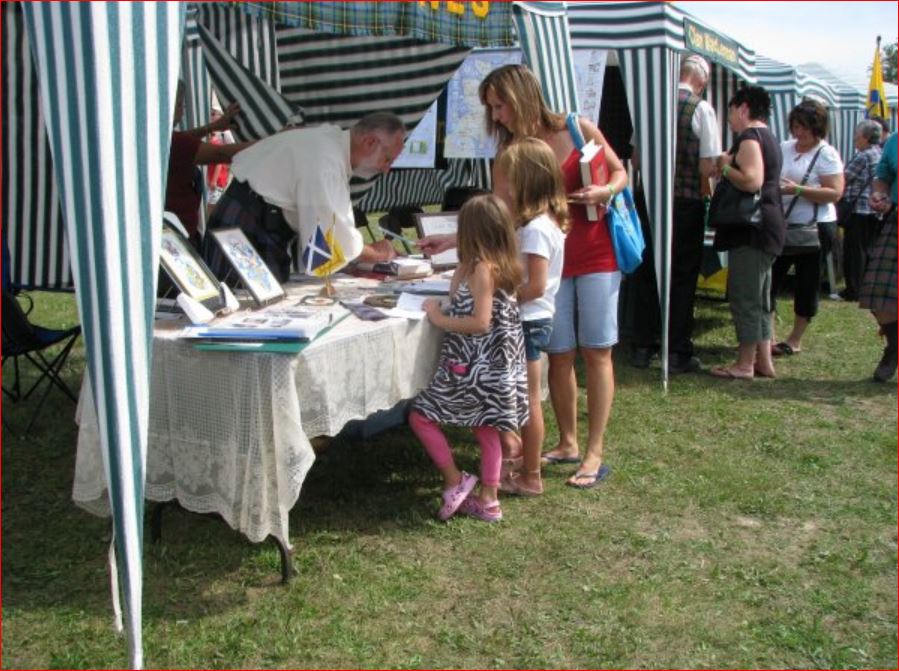 At several points during the day visitors (including our B&B hosts) could not find the Clan Ross tent due to the line-up to the Book Store, where featured author Diana Gabaldon was selling and signing her books. The crowds stretched from the far side of the Genealogy & Education Centre to where the McKiddies Centre stood in 2010.
