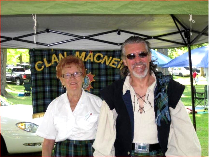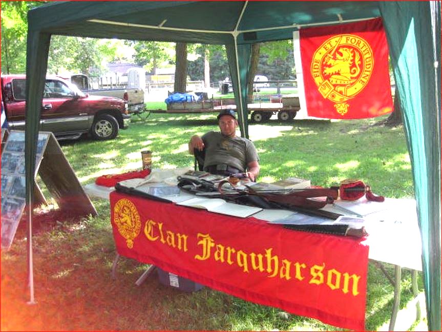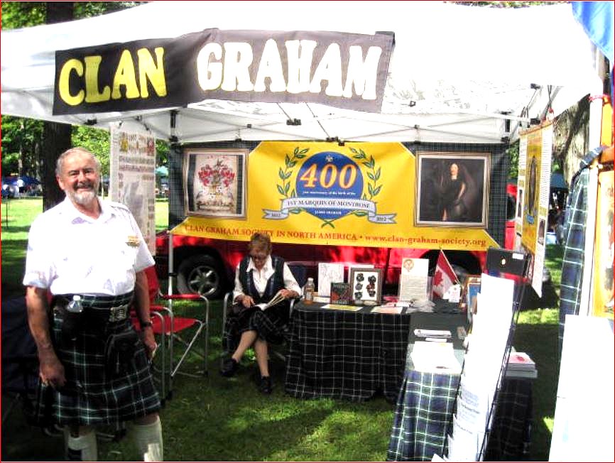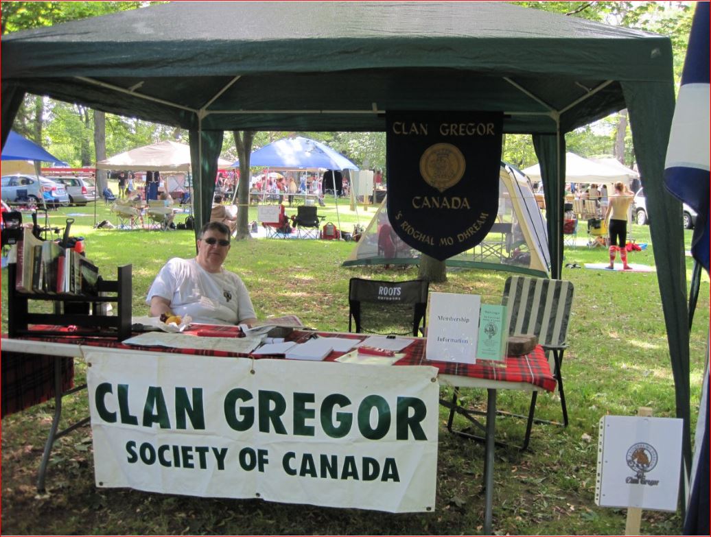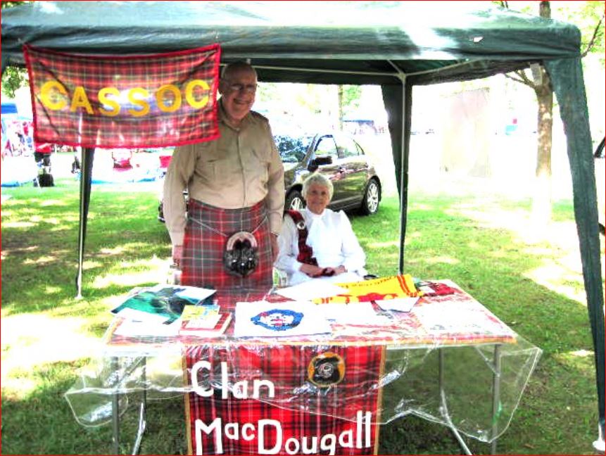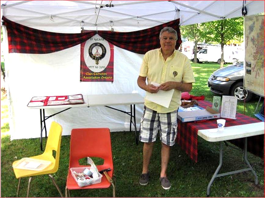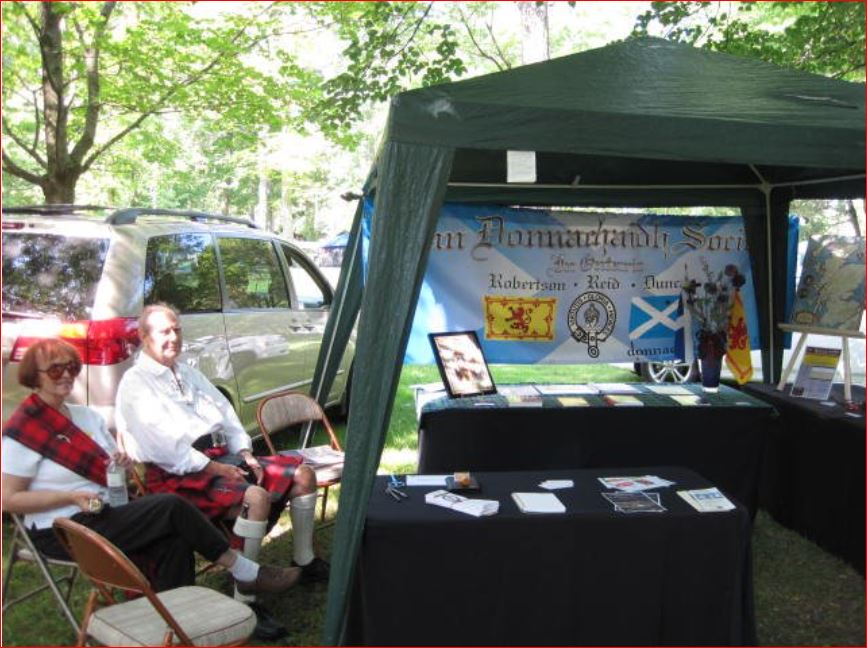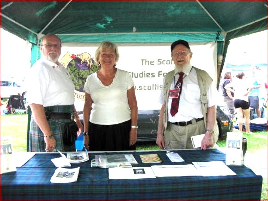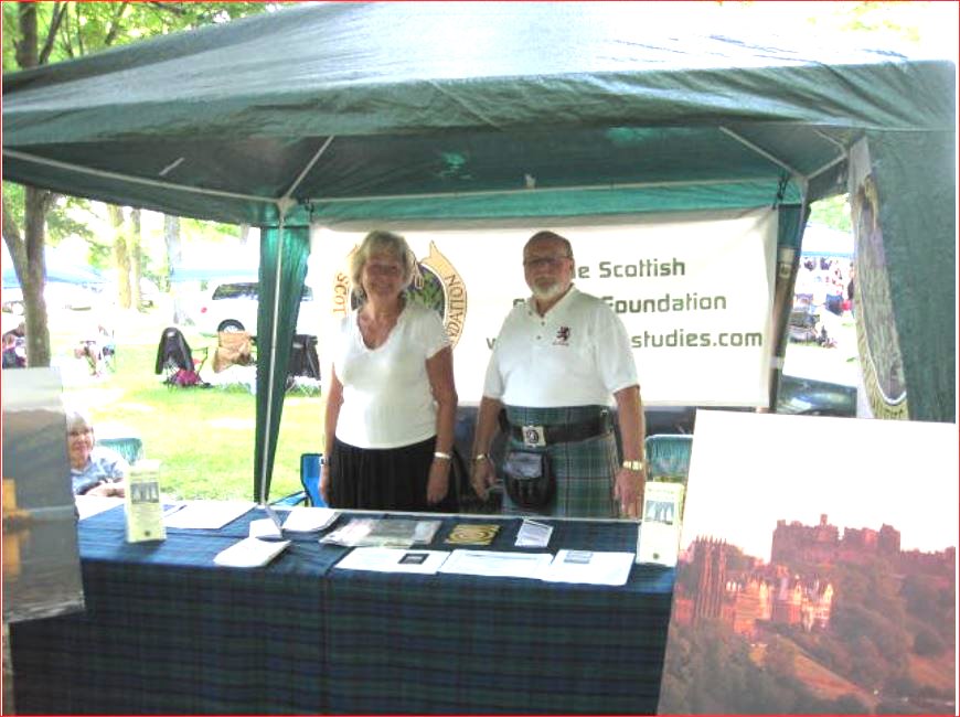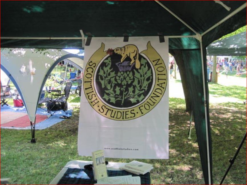 The tent for the Scottish Studies Foundation was in the area of the Celtic Clans at the grounds of the Highlands of Durham Games in Uxbridge. President David Campbell, my wife Patricia and I arrived early to assist Maggie McEwan with setting up the tent in a shaded area with the Celtic Clans.