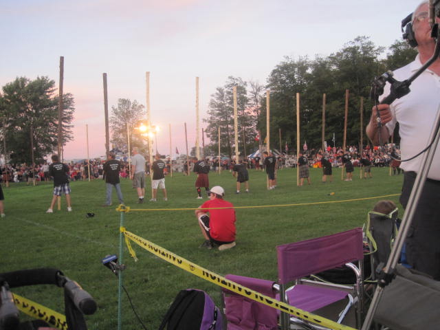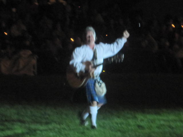 One of the highlights of the evening was several attempts to set a world record for the number of participants who could obtain valid scores during a massed caber toss. The record of 50 was not broken. Tommy Leadbeater, who usually opens the tattoo, did not appear until later in the programme.