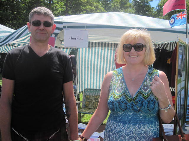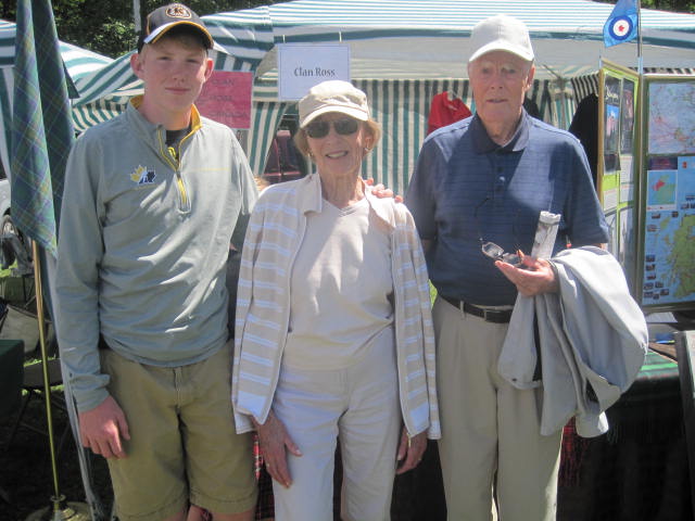 1. Andrew, Pat, Doug and Rob running the tent, 2. Karen and Colin Ross. 3. Colin sported a Ross Crest on his left arm, 4. My cousins Lloyd and Shirley from Fergus with grandson Robert Cadman from Kingston, 5. Susan Tokarsky, a descendant of Sir George W. Ross, and 6. David Montgomery, son of former Clan Ross Secretary and Newsletter Editor Margaret Montgomery. |