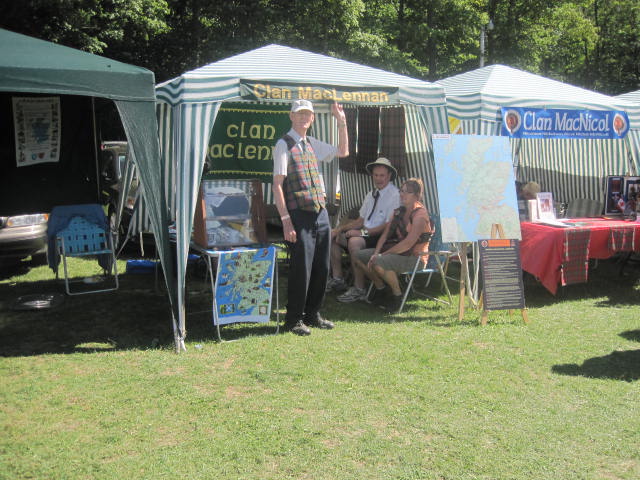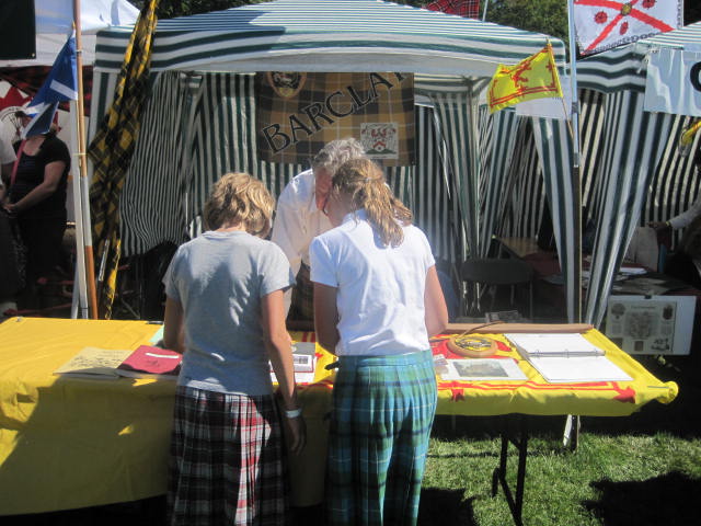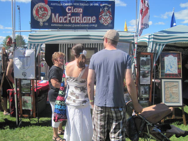 On the positive side, the clan representatives appreciated the arrangement, and found David Radley (the new supervisor of the Avenue) most receptive to their suggestions. The weather was also responsible for a very successful turnout during the weekend. Clan representatives gave a thumbs up to the Clan Passports provided by the Scottish Studies Foundation once again as a means of involving the children (plus parents and grandparents) in their Scottish heritage. This was the most successful year of all, with recognition in the "Children's Programming" and the "Clan" sections of the Fergus Scottish Festival website (thanks to president Bruce C. Lloyd), even though there was no mention or credit given in the Official Program of the festival.