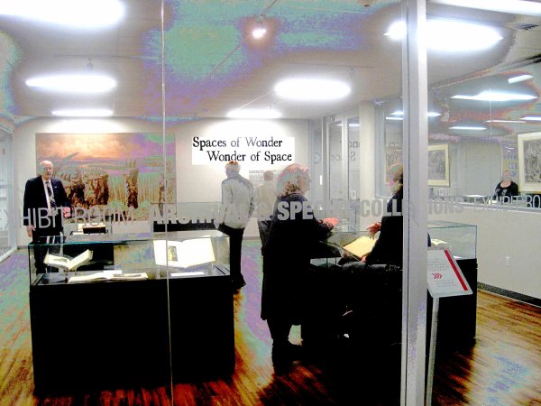 David Hunter and I arrived at the parking lot 44 across from Johnston Hall at the University of Guelph around 11:00 a.m. and proceeded to the McLaughlin Library, where we decided to have coffee in the Starbucks Coffee Shop. Mary C. Walsh, Senior Development Manager of the university's College of Arts, noticed David and joined us before we took the elevator to the Whitelaw Room on the second floor. The next two photos show the Archival Special Collections Room and the Reading Room beside our destination.