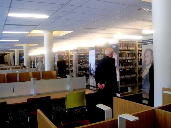 We received book markers similar to posters along the used stacks and noted that two-thirds of the stacks are still available for new materials in the future as the collection expands.
