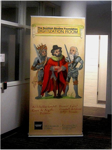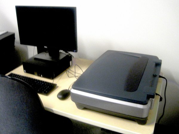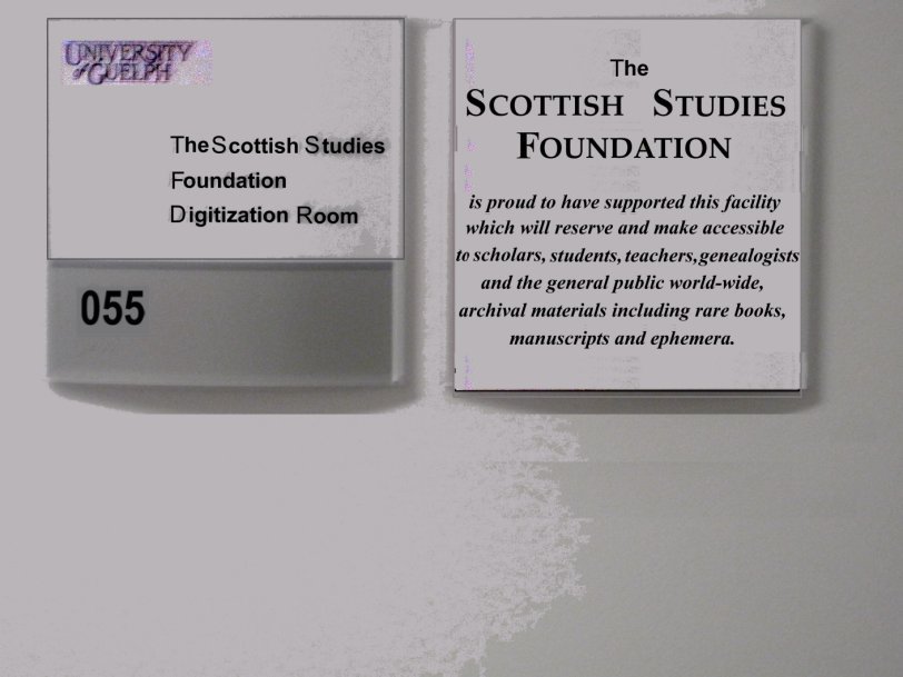 Equipment in the Scottish Studies Foundation Digital Archive Room includes a digital scanner for bound books, a large single page scanner and a flatbed map scanner.