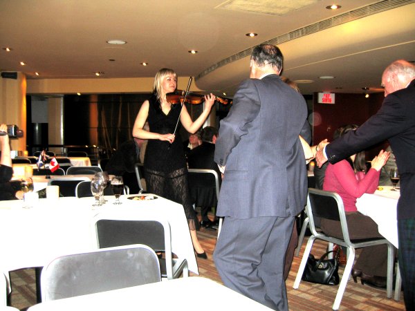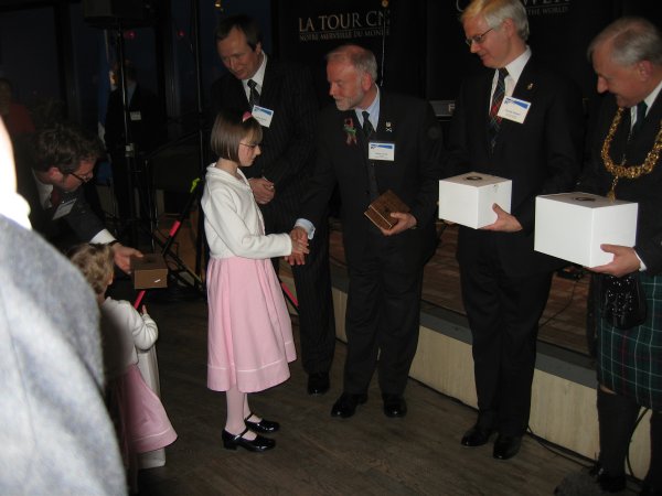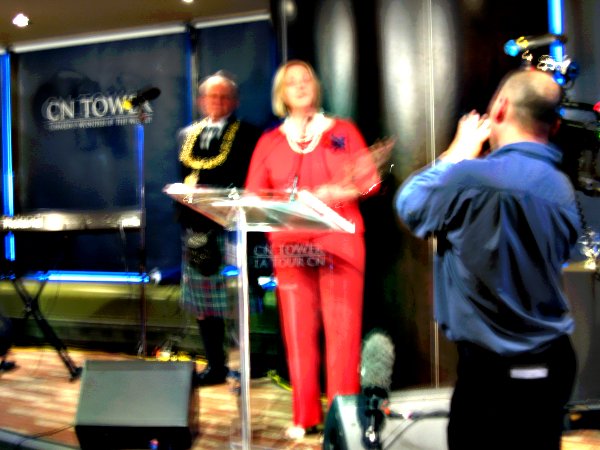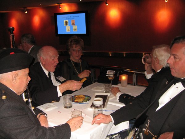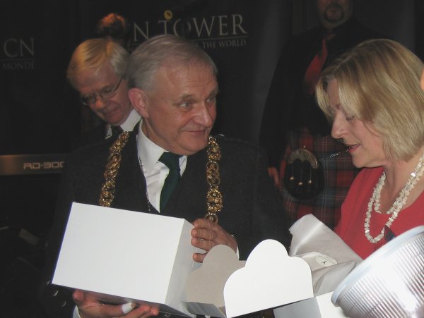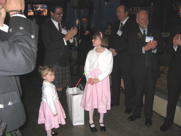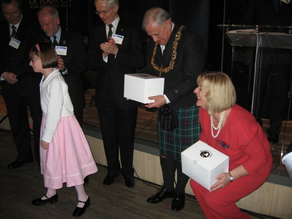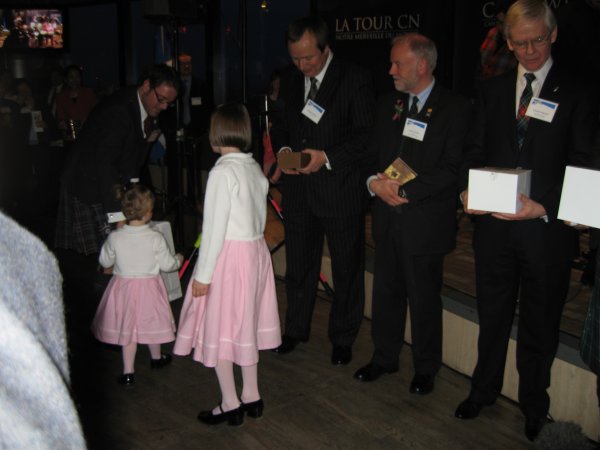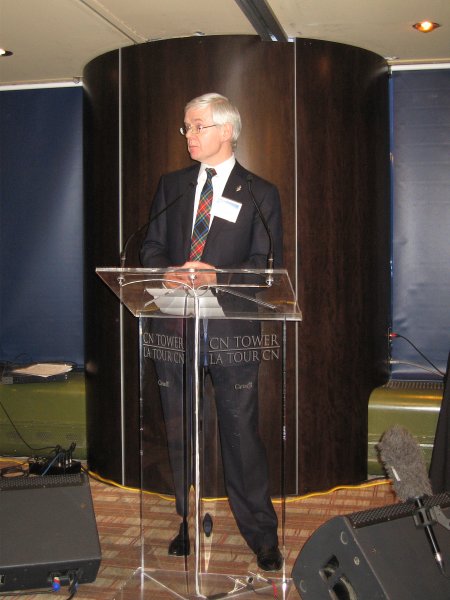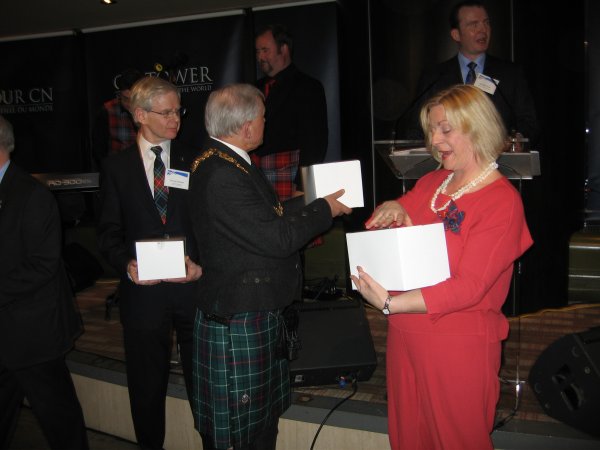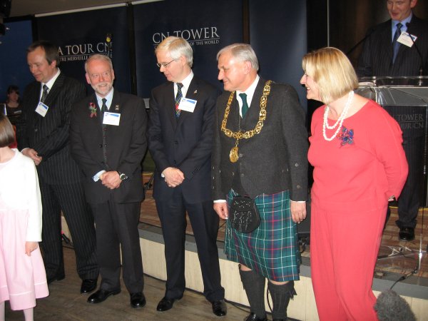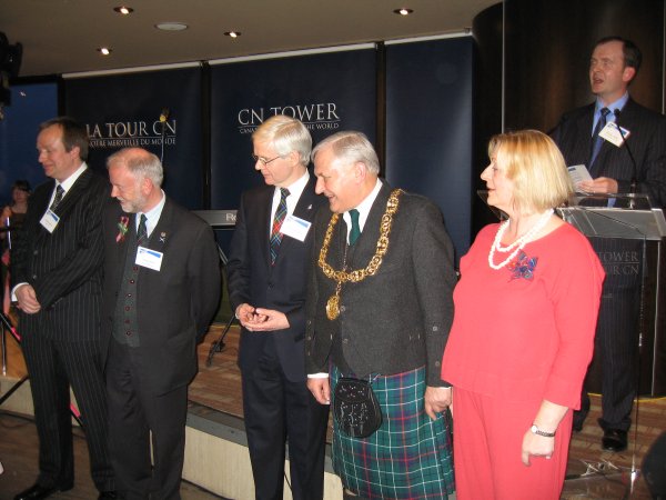 SPEAKERS AND PRESENTATIONS After the singing of O CANADA, representatives of the various groups participated in the formal ceremonies which included remarks from Michael Corish (Senior Vice-President Scottish Development International), David Hunter (President of the Scottish Studies Foundation), Donald A Stewart (Scot of the Year), and the Rt. Hon. Robert Winter (Lord Provost of Glasgow), plus the introduction of the Scot of the Year and presentation by Linda Fabiani, MSP, Scottish Minister for Europe, External Affairs and Culture. The Scottish Studies Foundation provided videos of the main programme at their website. The event proved to be a fine combination of Tartan Day and Scotland Week. You may watch these clips at: Part 1 Part 2 Part 3
