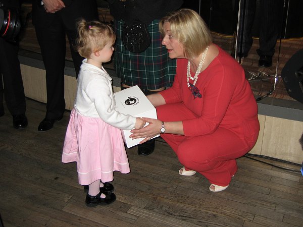 A WEE REUNION After the formal part of the programme, Pat and I located the table of Linda Fabiani and we recalled our meeting at the Tartan Day dinner in 2006. Her cousin (James Carcary) took the picture of the three of us, and I reciprocated by taking a photo of his family. Photographs were emailed to MSP Linda Fabiani within 24 hours.
