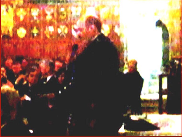but the dinner menu had already begun to be served (and continued throughout John's delivery). Here are some pictures captured from videos: