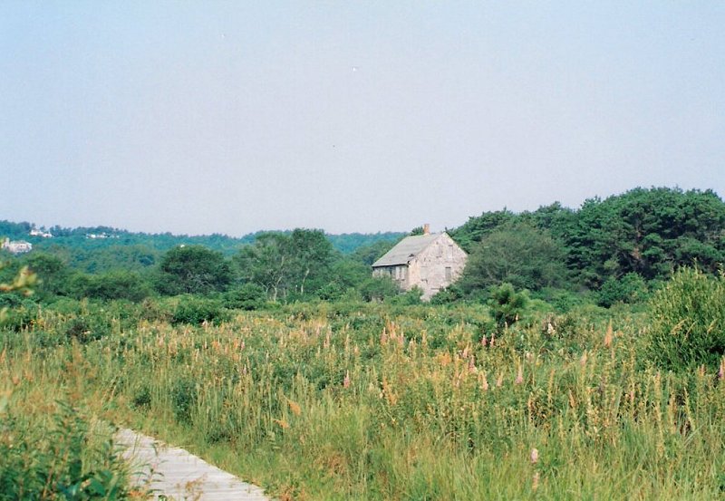We found a McDonalds in a mall in Hyannis which had a lobster roll special with coffee for lunch (US$10), after which we took a scenic train trip to the Cape Cod Canal. We also enjoyed much of the Hyannis Harbour Walk before and after dinner at the Hungry Mariner Restaurant, Barnstable, near the Days Inn Motel. After a free continental breakfast on Wednesday morning, August 26, we drove to a Cranberry Bog in Truro and then took the (US$11) Provincetown Trolley Tour including the Race Point Information Centre which we had visited earlier. [At the Provincetown Heritage Museum, one of the displays was the "Rose Dorothea", the world's largest indoor model of a fishing schooner.] Scallop rolls (US$18) in Provincetown made an excellent lunch. The following photos show the cranberry bog trail, Race Point beach and the Provincetown harbour.