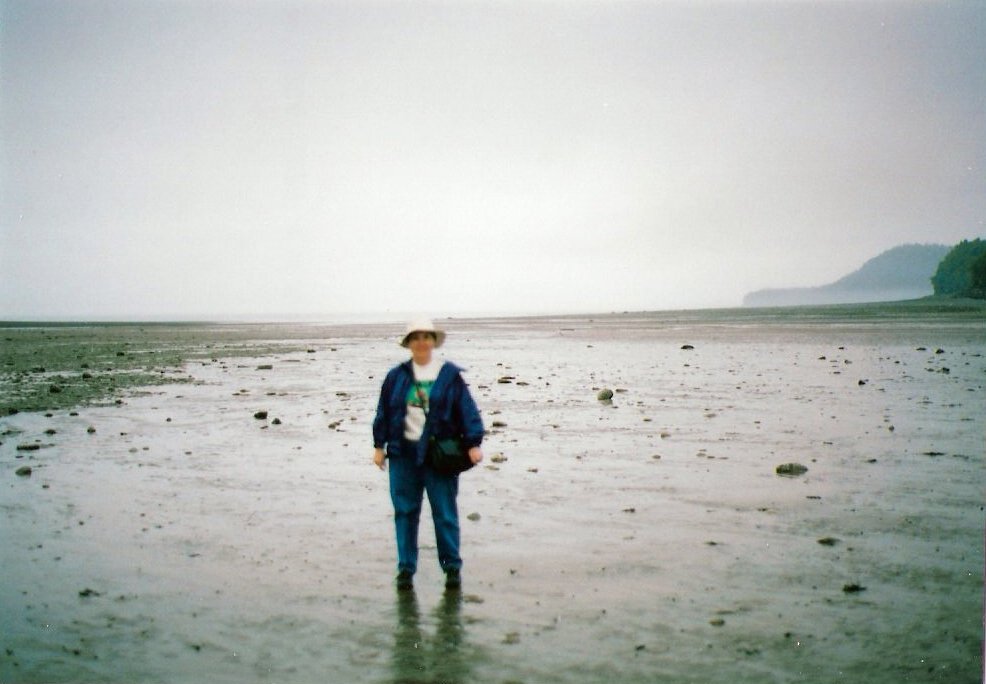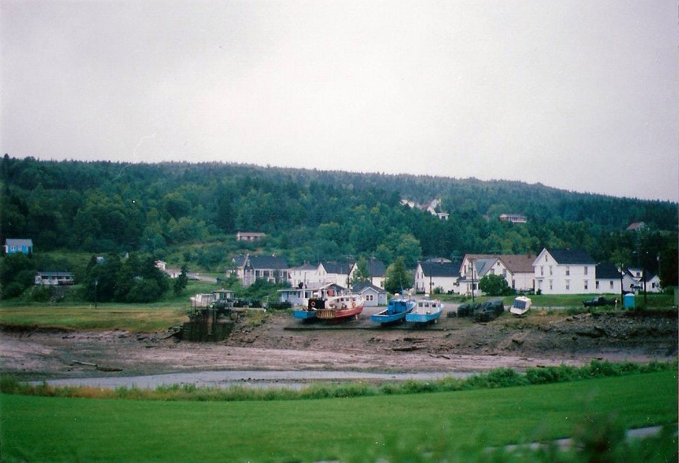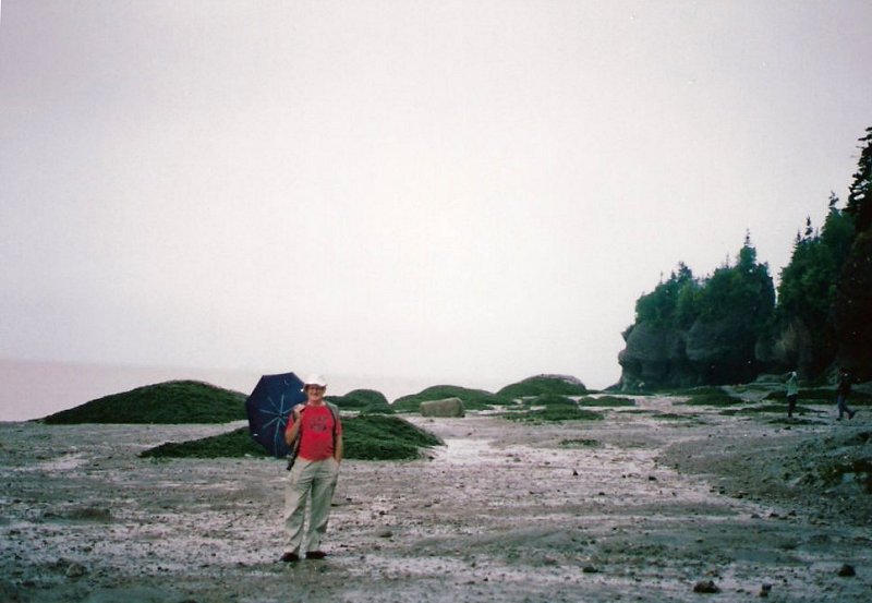 The skies were overcast as we made our way to the southernmost location of our stay in New Brunswick . . . the Fundy National Park. The drive through the forest was both picturesque and peaceful, and the tide was still out when we arrived in Alma on the shore of the Bay of Fundy. (See the photo with the title above.)