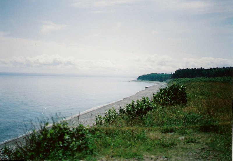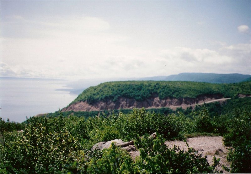 We had reserved our stay in Truro, Nova Scotia, at another Journey's End Motel for the night of Tuesday, August 18, and we arrived in time to observe a tidal bore come up the Salmon River at 4:32 PM. On Wednesday after breakfast, we headed across the Canso Causeway to Cape Breton Island where we took the Atlantic Side of the Cabot Trail north to spectacular Cape Smokey, which ascends 365 metres and is capped with the Cape Breton Highlands National Park. We enjoyed stunning ocean views as we had a barbecue lunch. [Perhaps it's best to use the Map of Cape Breton Island for this segment, but you may continue to use the map of our trip East if you need it. Viewers may also click on the map of Canada to follow our trip in Nova Scotia.]