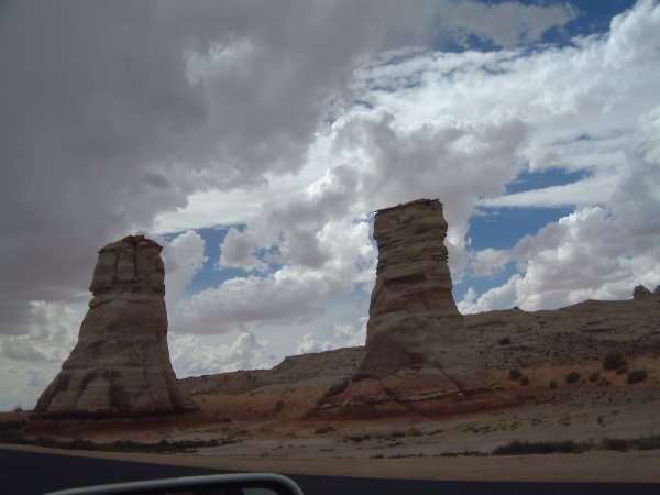 - "Elephant Feet": On the return trip along Highway 180, we passed the Monument Valley Navajo Tribal Park. Road construction prevented cars from stopping at the roadside, but Pat managed to get this picture anyway.