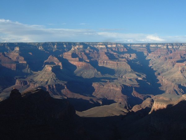 September 18, 2004: After a sunny drive south from Moab, past Monticello, and down highway 191 into the Navajo Indian Reservation crossing to Arizona and meeting highway 180 . . . it seemed logical to take a side-trip over to the Four Corners Monument, just to record the fact that we were there. September is definitely too late if you happen to be interested in art, pottery and other crafts. Most booths had little to offer. Even the local museum shops and casino shops were closed. The "best" items had already been shipped off to big name stores in cities as large as or larger than Flagstaff, Sedona, Gallup, Albuquerque, Santa Fe or Taos (which were on our map plan later). Thus, we recorded our stop and turned back towards the southern rim of the Grand Canyon.