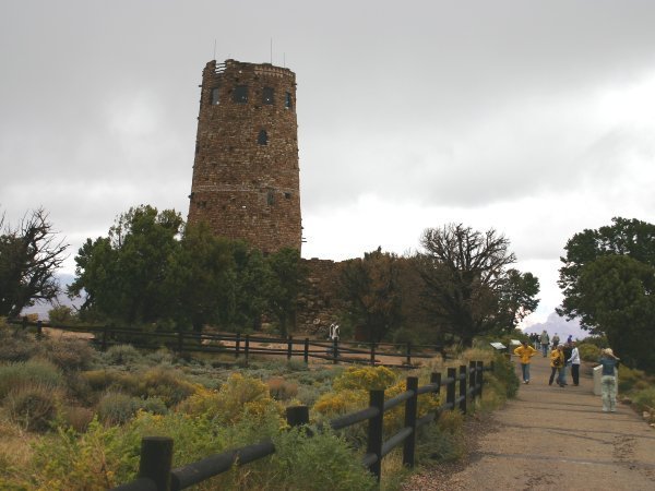 - The Swollen Colorado River: Another effect of the thunderstorm was quite evident. The banks of the Colorado River were wider this morning. - The Desert View Watchtower: This gift shop (of weathered stone) and rest area were planned in 1930 and opened in 1933. The Painted Desert can be seen on the horizon to the East on a clear day. - Another View of the Colorado River: The river and lakes in the canyon were more easily seen at the lookout points today.