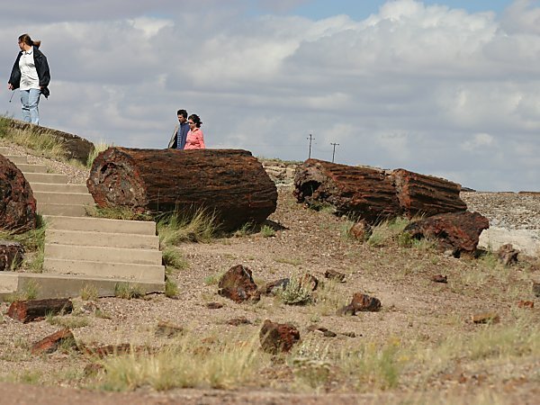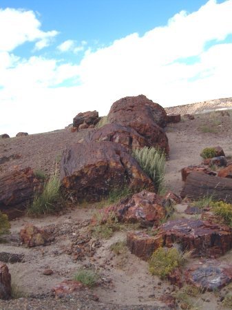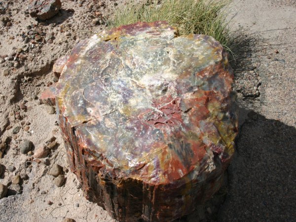 - Crystals in the Rings: A cross-section of petrified wood can show colourful crystal patterns. After the Late Triassic Period (225 million years ago), the area was covered with a fresh water lake, which was saturated with silica and other minerals. - Desert Deposits: Chunks of petrified wood were deposited in the Painted Desert when old bluffs disintegrated. - Giant Logs near Rainbow Forest Museum: The Rainbow Forest Museum is about 4 km from the entrance at Highway 180. This area has some of the rare long logs, and the museum has displays about geology and palaeontology.