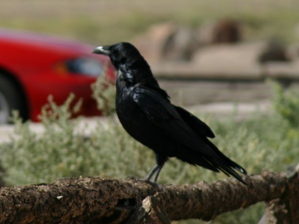 - Blackbird: This blackbird, with a coloured pattern on its beak, flew down to a fence at the parking lot . . . and Jenn captured a second photograph before it flew away to follow a van to our next stop at the Puerco Ruin.