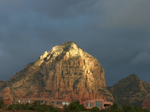 - Sunset in Sedona [TOP]: I was posting messages on the internet while most of the pictures were taken, eh? - Clouds: The rain followed us, and there were a few brief showers overnight again. - Sunrise in Sedona: A wee breakfast was more important to me. I saved my film for different photographic opportunities. Digital cameras have some advantages over the disposable varieties.