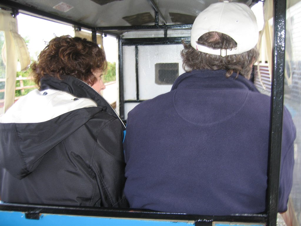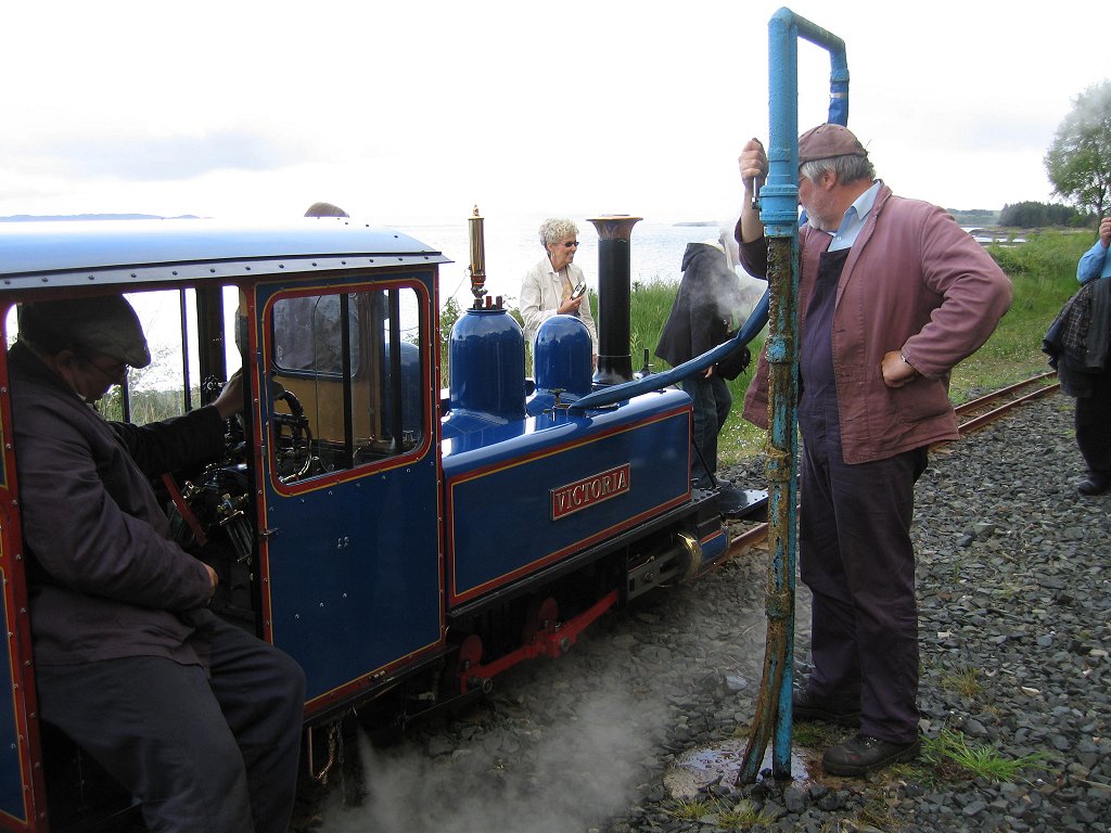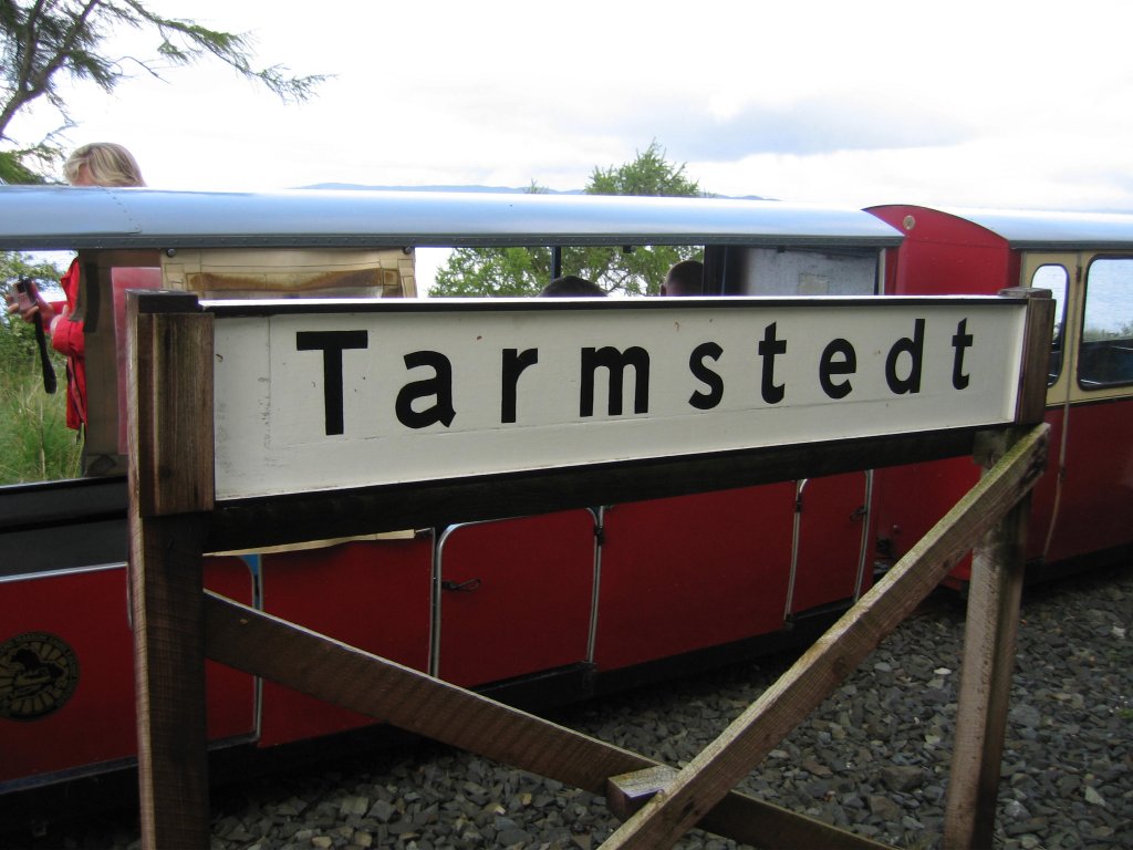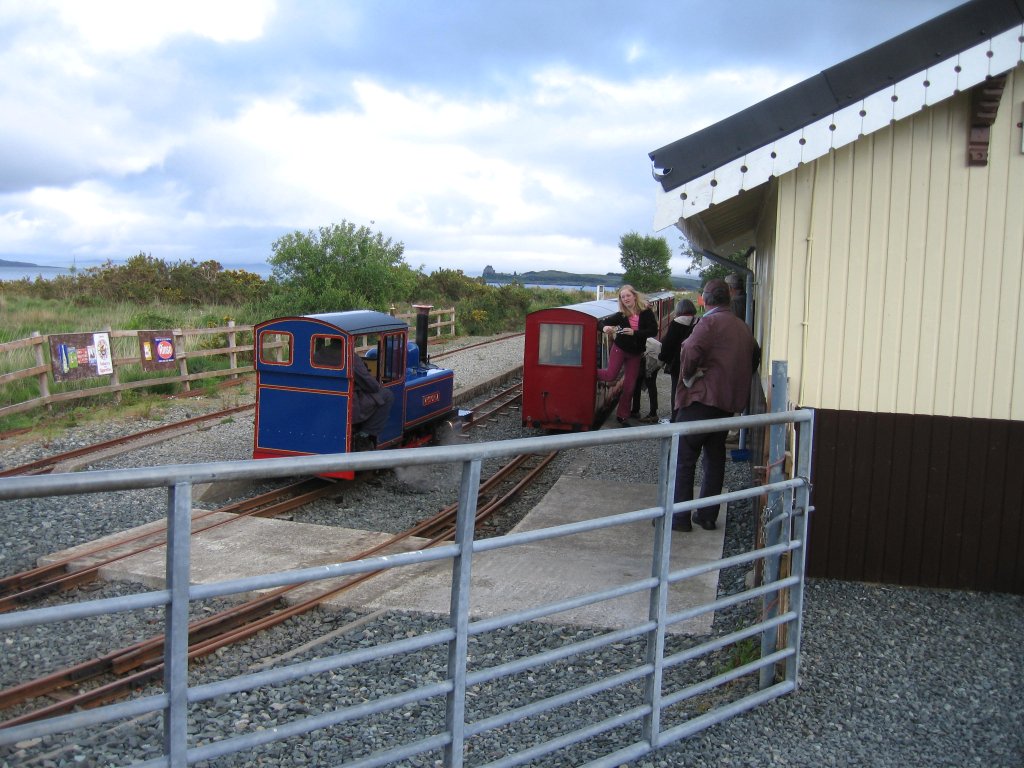 Our tour director promised a fantastic demonstration of Britain's prototype for future rapid transit in the UK. We were guaranteed a ride on a compact and energy-efficient train, which boasted a cost-effective operation with utmost consideration of safety standards and comfort for the passengers. The Isle of Mull train was advertised as a non-stop trip from the Craignure station to its destination (the Torosay station), except for one mandatory mid-journey stop at Tarmstedt. With these statements, our bus came to a halt near the old ferry pier at Craignure and waited while Gordon obtained tickets at the railway station office.