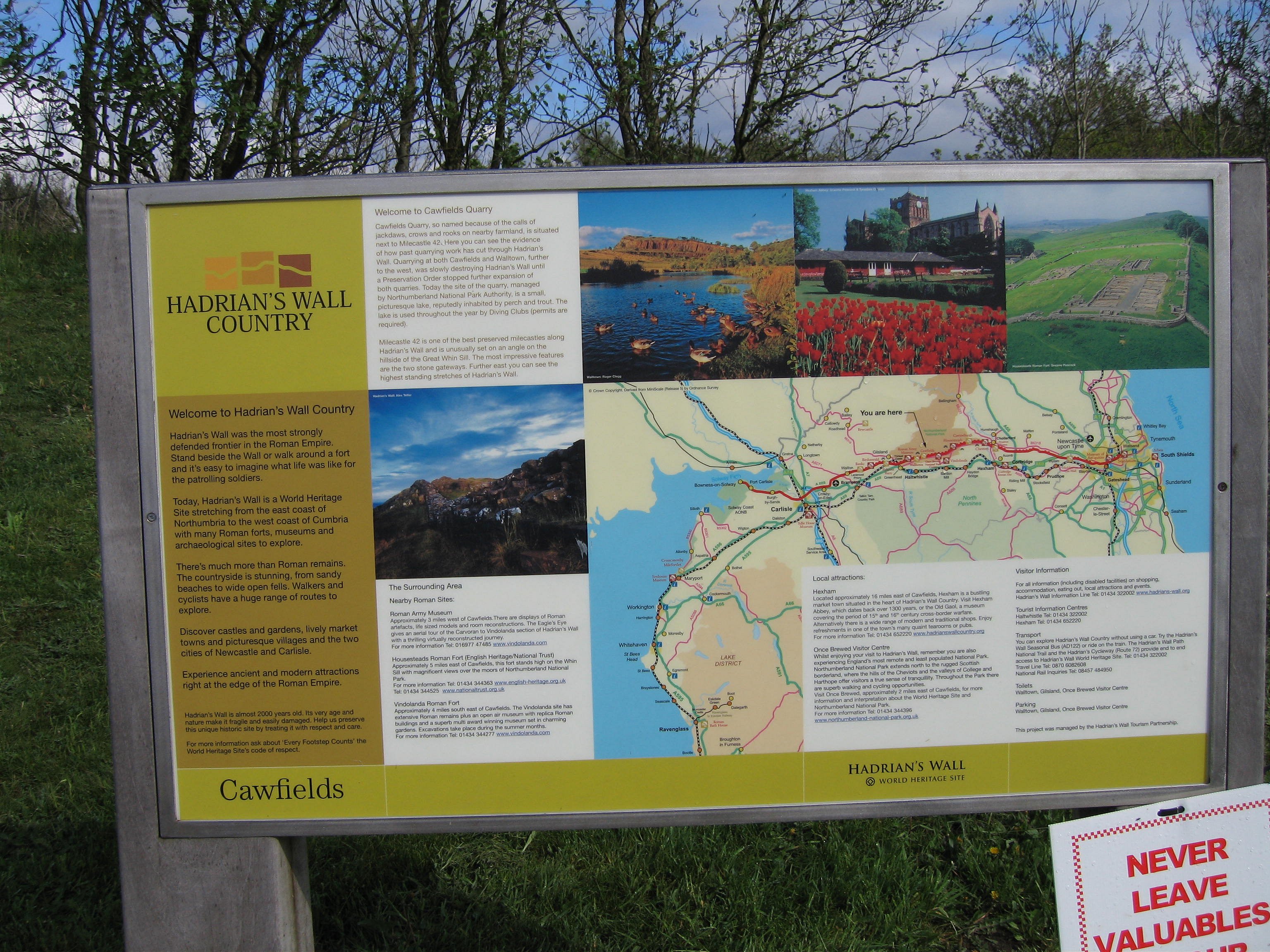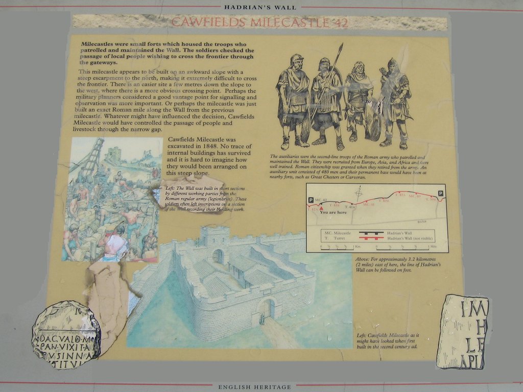 The preceding sign may be clicked more than once to obtain a full-sized map with further details. The next sign contains data about small forts called "Milecastles".